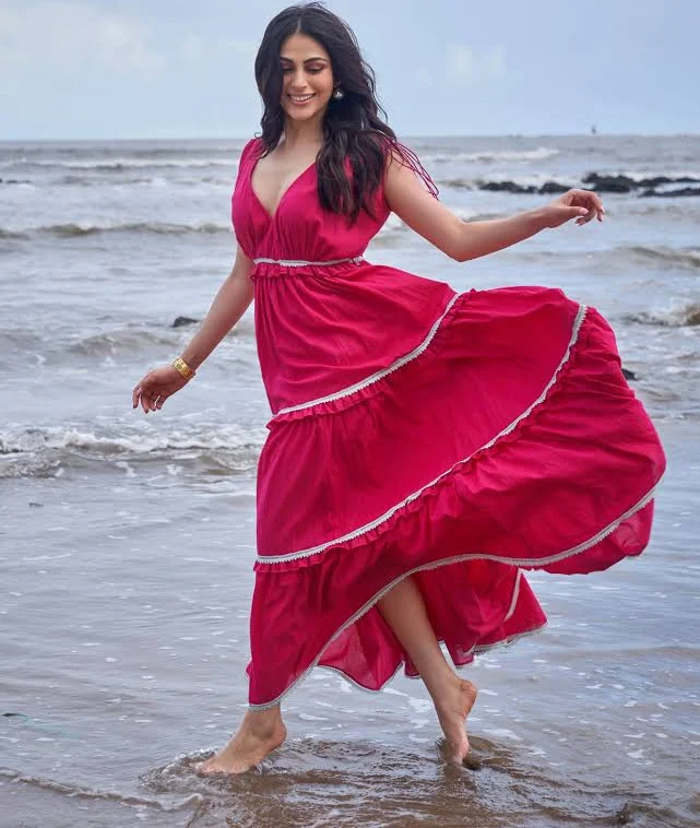 Dress | Casual | Tiered | Cotton | Pink | Solid | V Neck